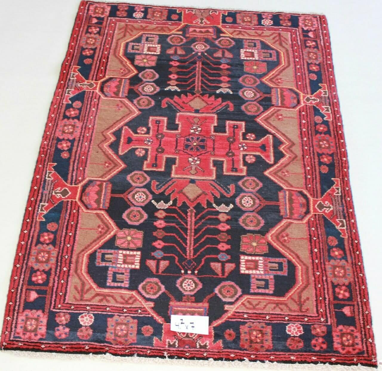 Hand-Knotted Afghan Wool Rug 4.4×3 ft | Rectangle Bluch Pattern wool Foundation