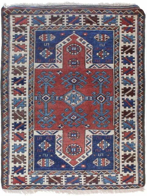 Handwoven Afghan Rug: 4’5″ x 2’7″ ft, Deep Red, Dark Navy/Black, Rust/Golden Brown – Traditional Geometric Motifs for Elegant Interiors